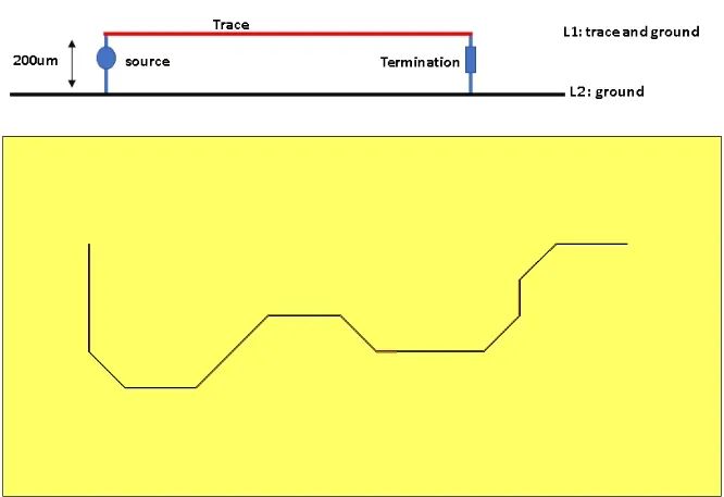 案例1包含一个2层PCB。激发的走线位于底层。顶层是PCB接地参考层(参见图2)。